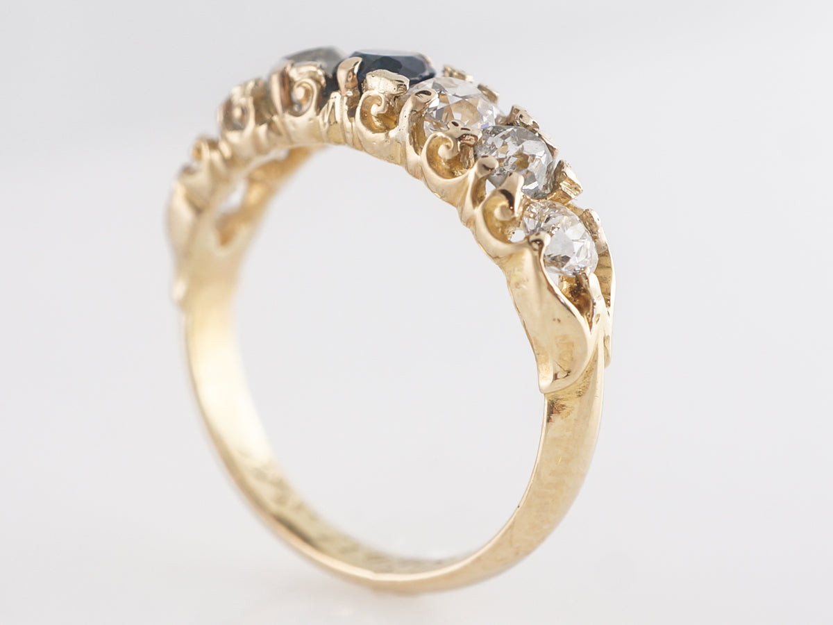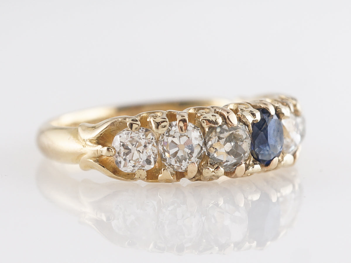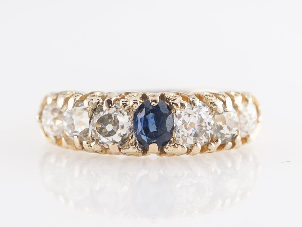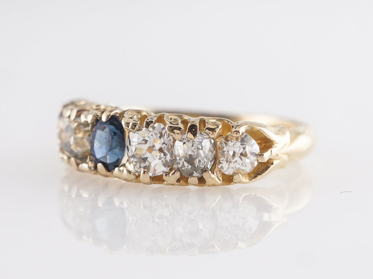 Vintage Victorian Sapphire & Diamond Engagement Ring in 14k