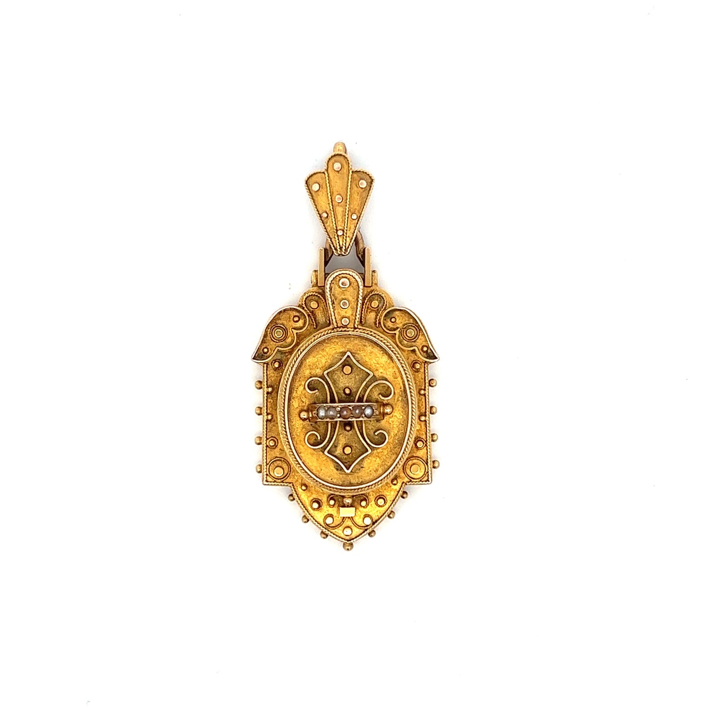 Vintage Victorian Seed Pearl Locket Pendant in 14k Yellow Gold