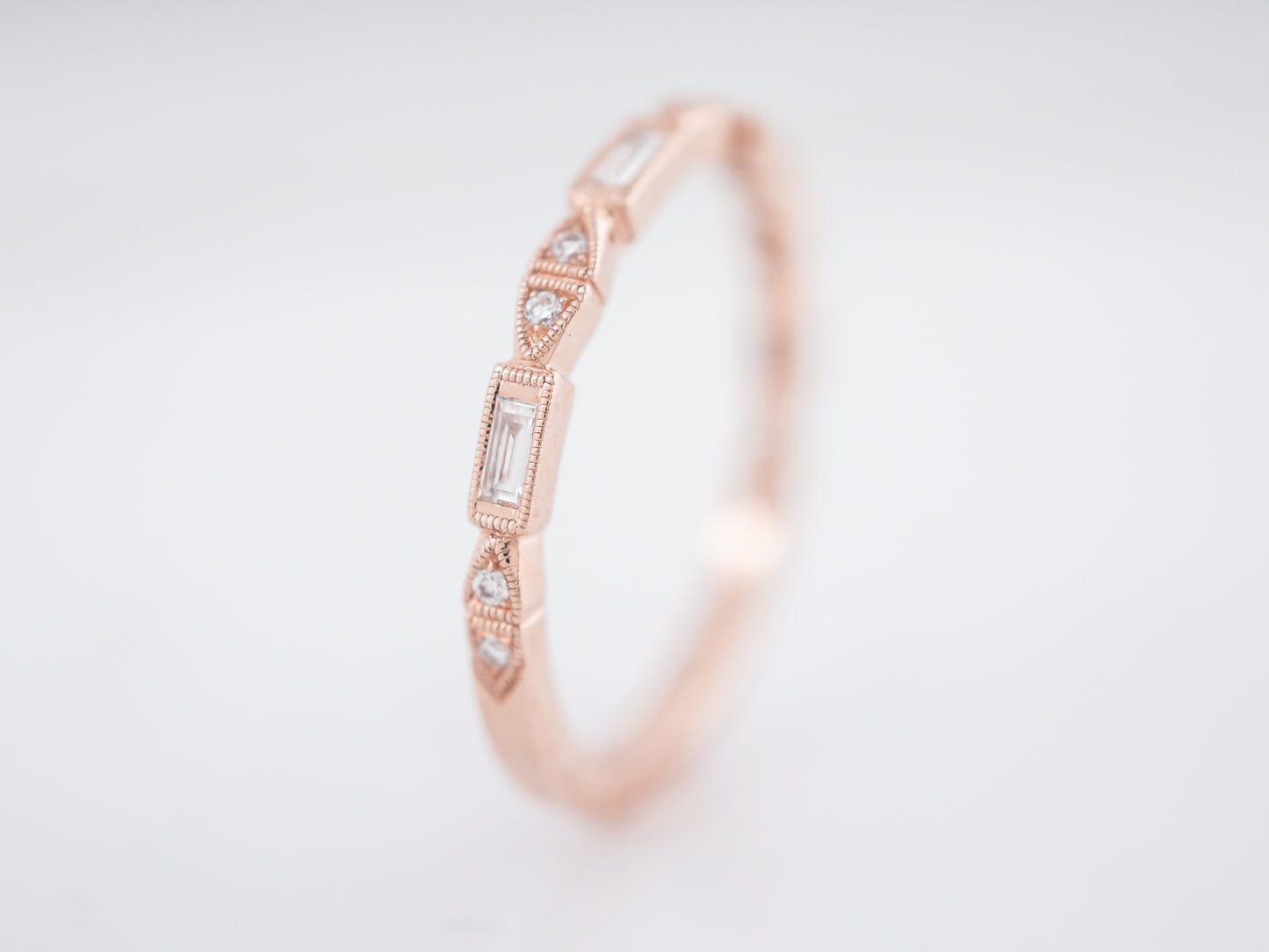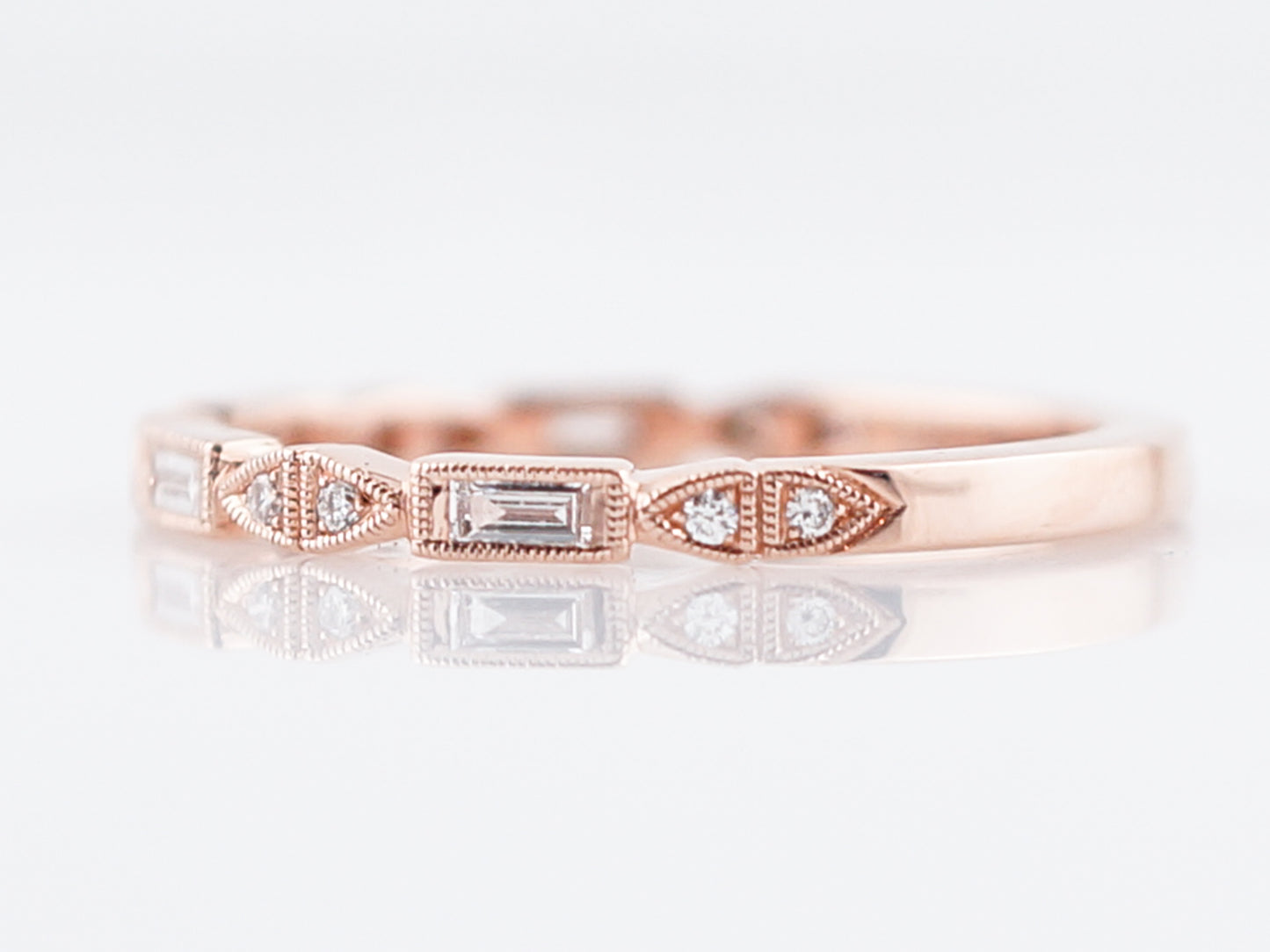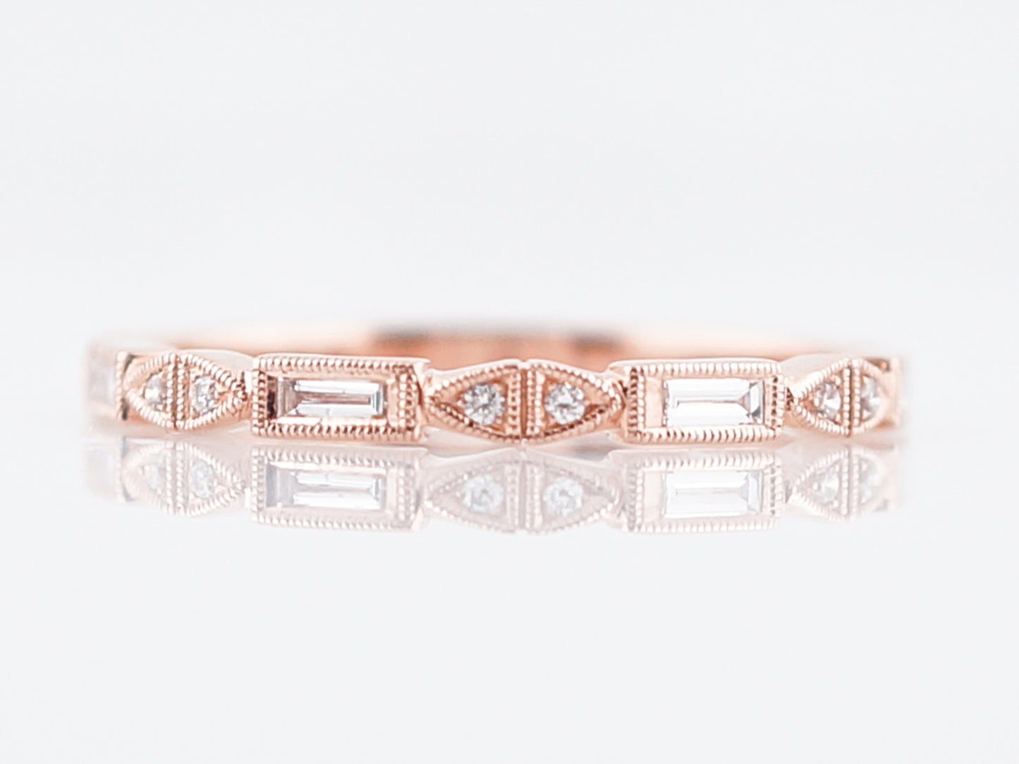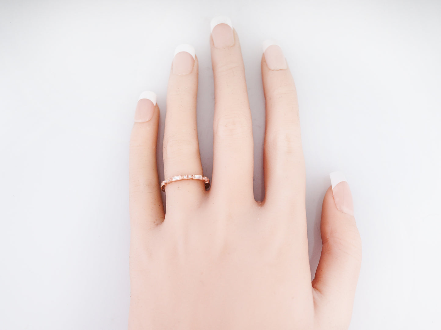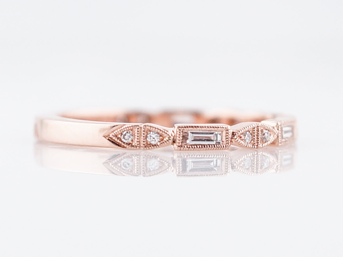 Modern Wedding Band .15 Baguette Cut in Diamond 14k Rose Gold
