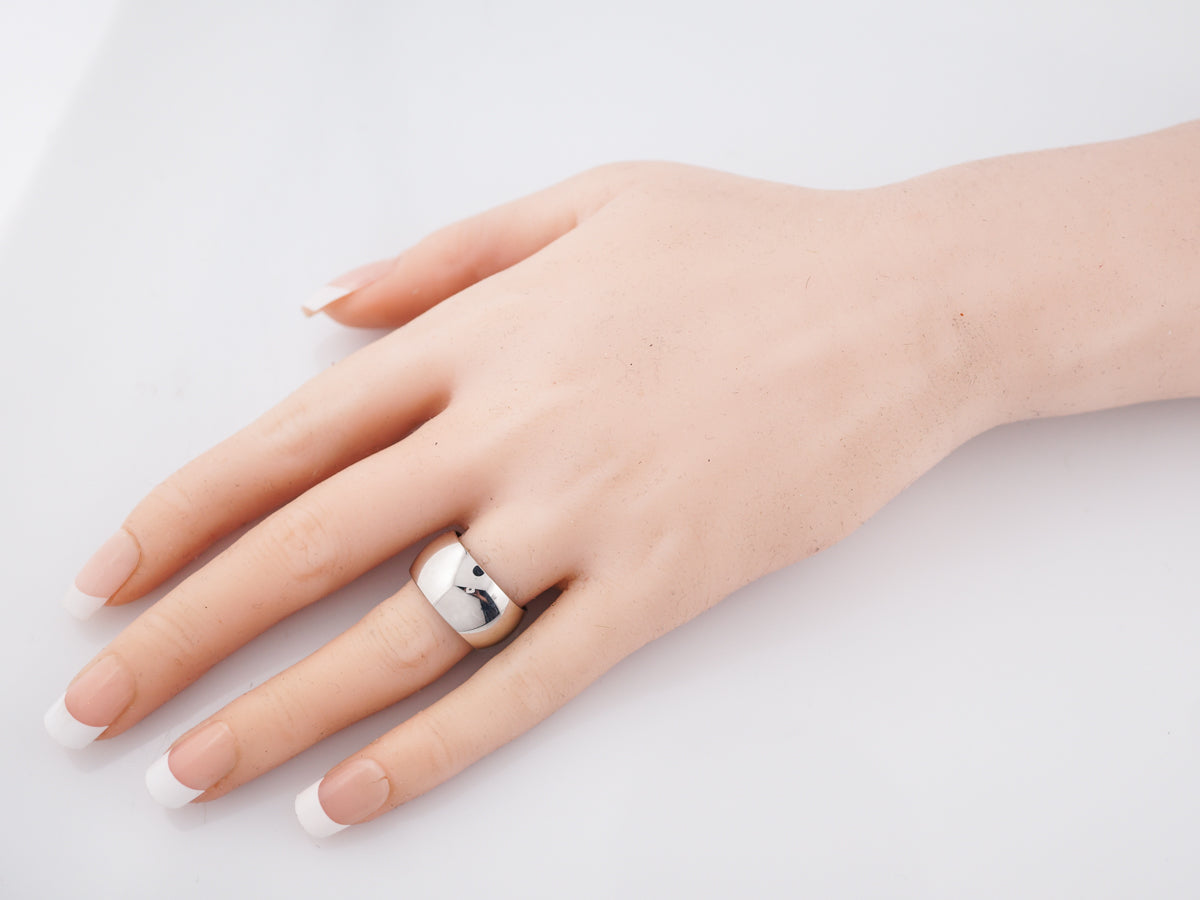 Minimal stylish. This modern half-round wedding band is bold and timeless. Suitable for a men and women. A plain unisex band that shimmers in the light. This 14 karat white gold band balances an expert design and a modest style, all in one.
