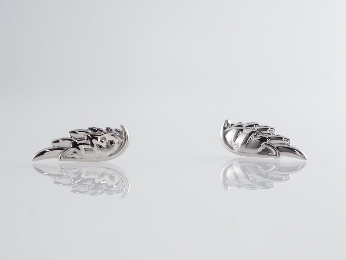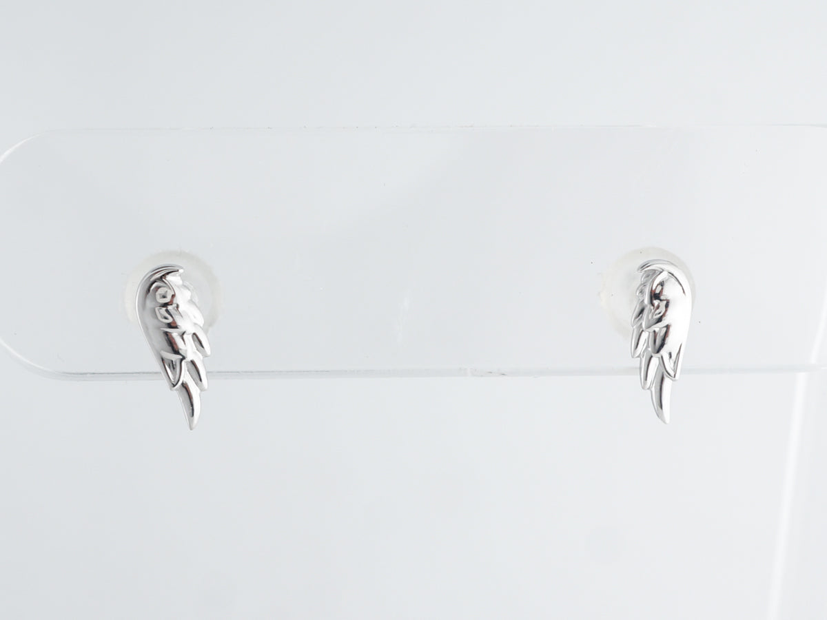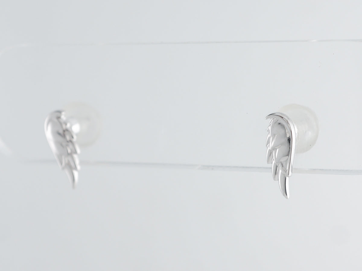 Wing Stud Earrings in 14k White Gold. This dainty pair of stud earrings are finished in 14 karat white gold and are molded in the shape of beautiful angel wings. The tiny stud earrings are perfect for everyday wear and come at a price point making them great for a gift to start a jewelry collection.