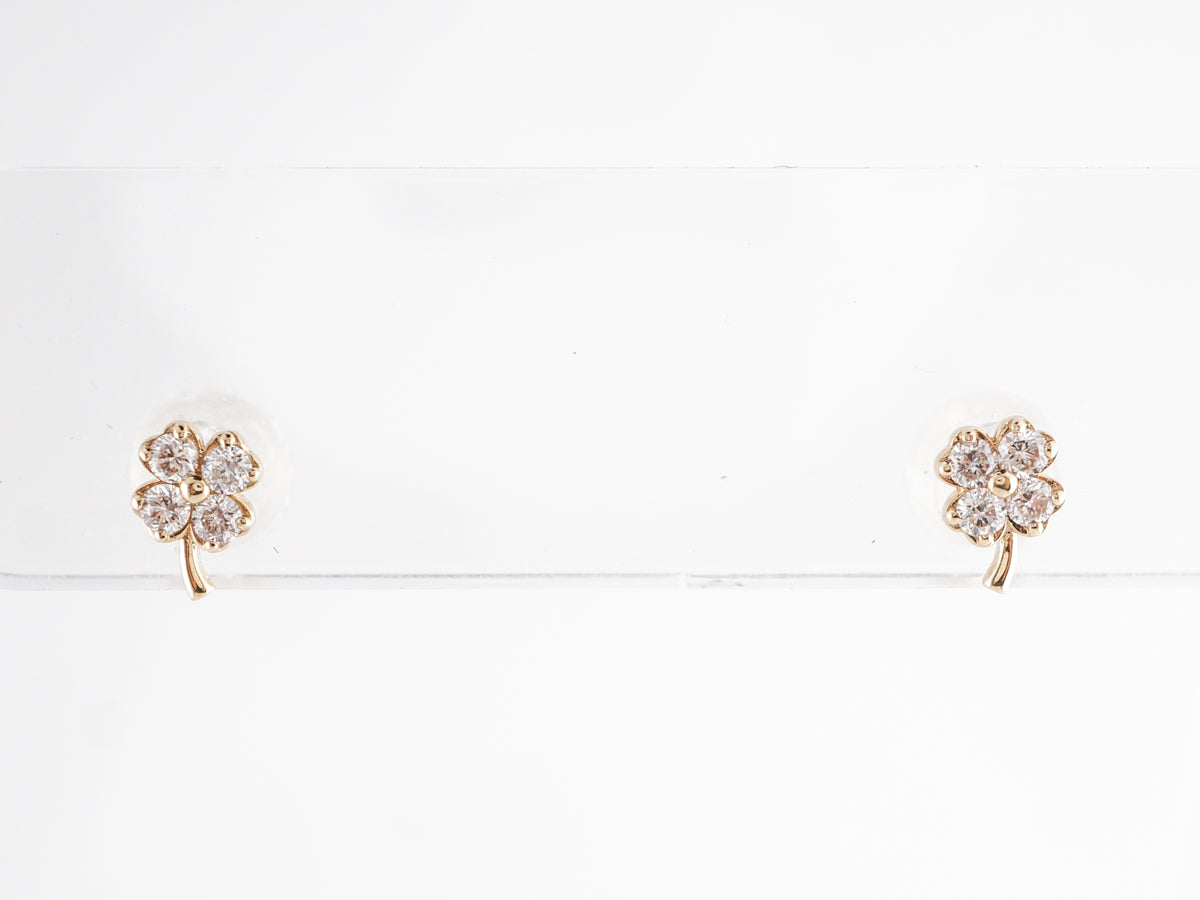 Yellow Gold Clover Earrings w/ Round Brilliant Diamonds