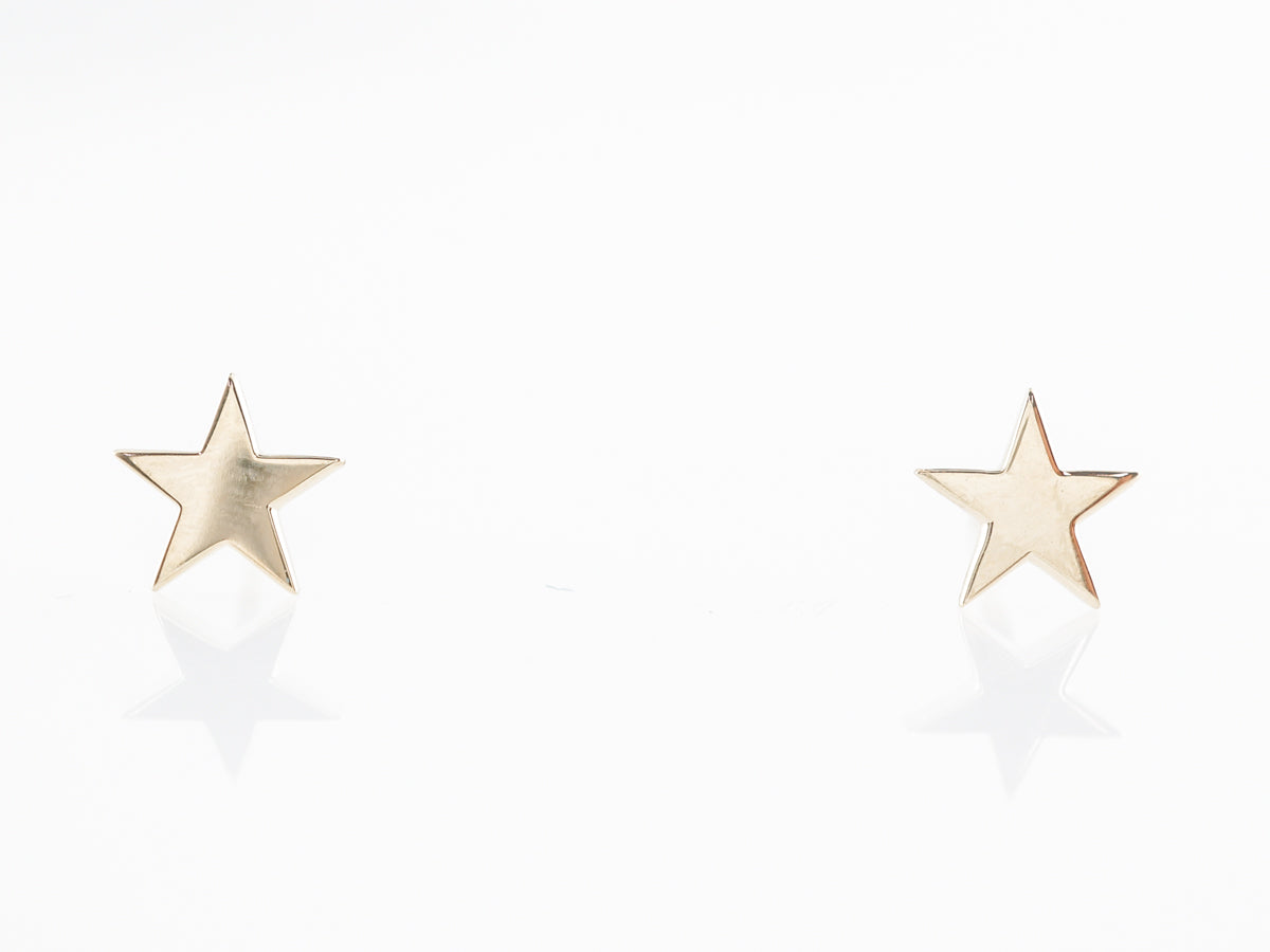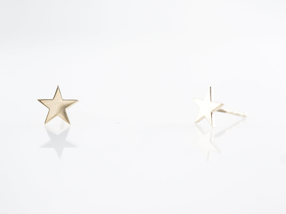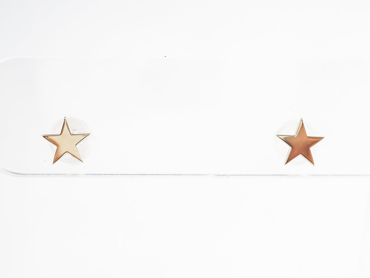 Yellow Gold Star Stud Earrings in 14K. These modern stud earrings are finished in 14 karat yellow gold. The simple star design looks great in the warm rose gold and make these excellent everyday earrings.