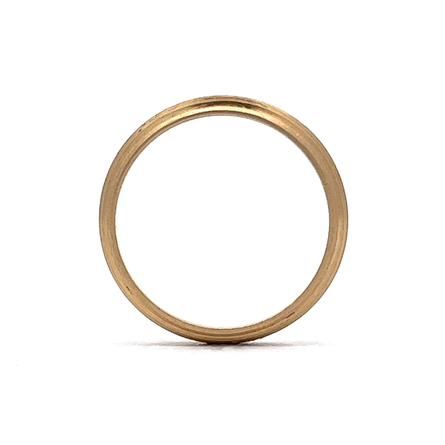 This eye-catching men's wedding band is crafted in 14 karat yellow gold with a ridged and textured finish. Expertly designed in the mid-century era, this unique wedding band is 5mm wide and has a flat profile, perfect for everyday wear. The ridged texture is contrasted with a polished finish, making this band a timeless, yet modern piece.