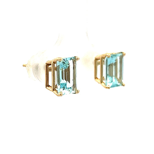 2.86 Emerald Cut Aquamarine Stud Earrings in Yellow Gold
