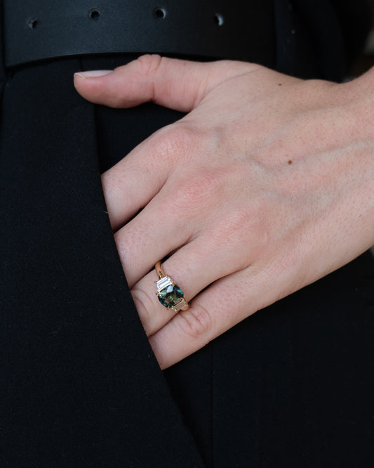 2.52 Sapphire & Diamond Three Stone Engagement Ring 14k